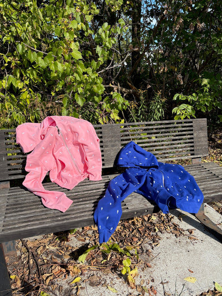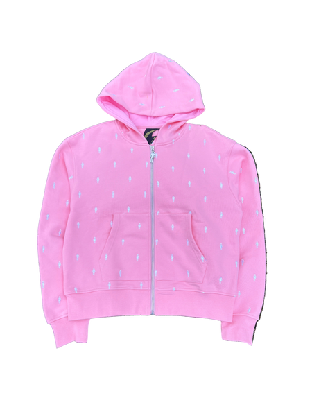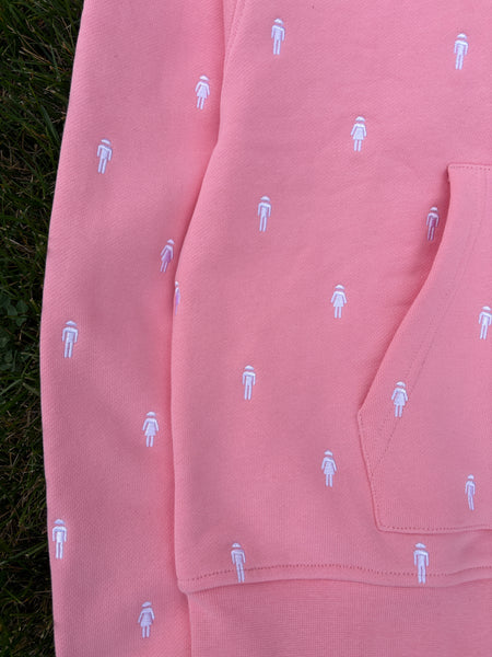 - full zip hoodie with Brainstormer icons embroidered across entire garment and custom brainstormer logo zipper